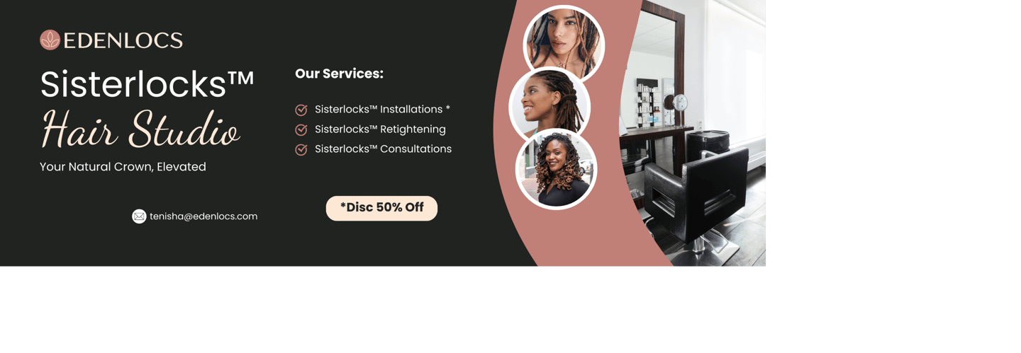 Nestled in Alexandria, Edenlocs offers a serene space where your sisterlocks journey begins with care and elegance.